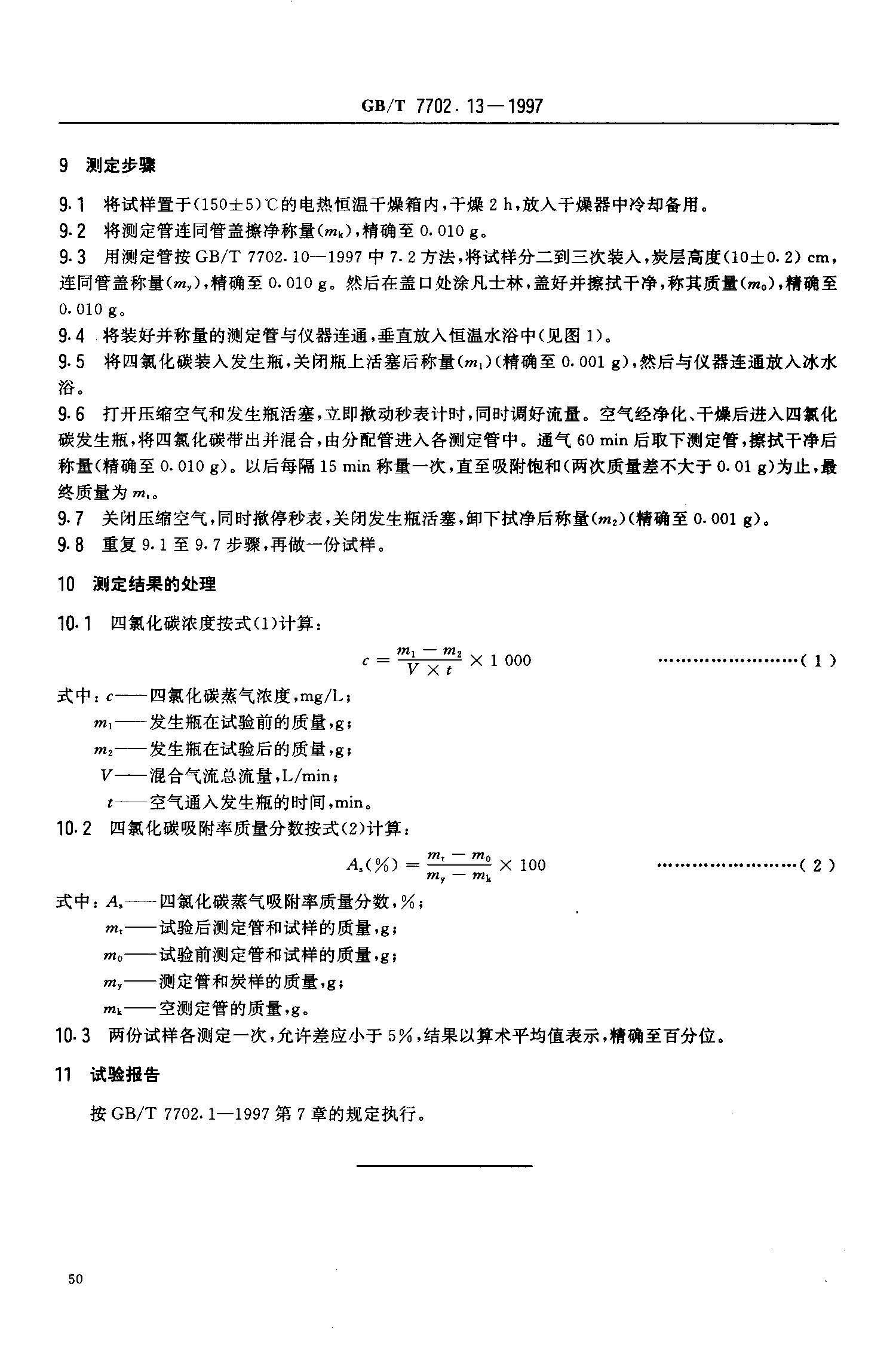 【GBT 7702.13-1997 煤質(zhì)顆粒活性炭試驗方法 四氯化碳吸附率的測定】